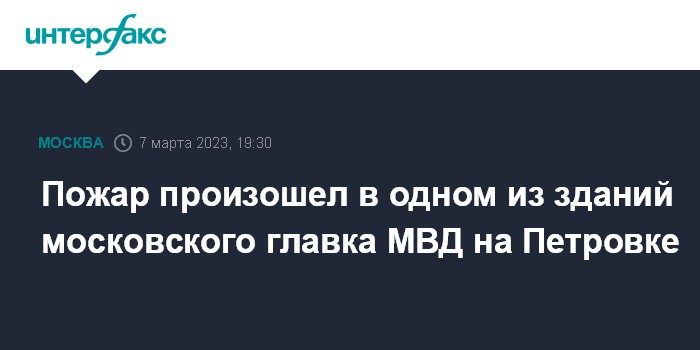 Пожар произошел в одном из зданий московского главка МВД на Петровке
