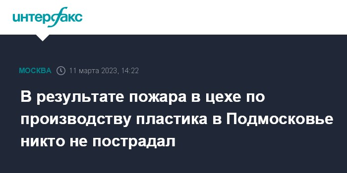 Москва. 11 марта. INTERFAX.RU - Пожар в цехе по производству пластика в подмосковной Рузе полностью потушен, сообщили "Интерфаксу" в субботу в пресс-службе ГУ МЧС по региону.