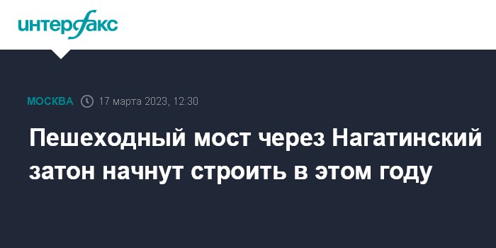 Москва. 17 марта. INTERFAX.RU - Строительство пешеходного моста через Нагатинский затон в Москве начнется в текущем году, сообщили в пресс-службе столичного стройкомплекса.