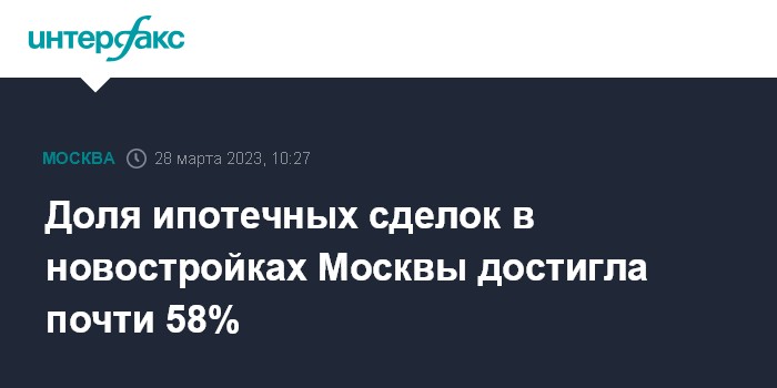 Доля ипотечных сделок в новостройках Москвы достигла почти 58%