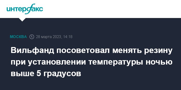 Москва. 28 марта. INTERFAX.RU - В Москве менять зимнюю резину на летнюю до конца первой декады апреля нецелесообразно, сообщил "Интерфаксу" научный руководитель Гидрометцентра России Роман Вильфанд.