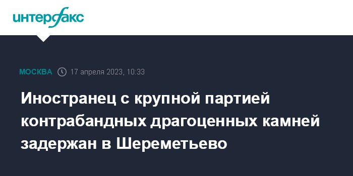 Москва. 17 апреля. INTERFAX.RU - Пограничники задержали в аэропорту Шереметьево иностранного гражданина с партией контрабандных драгоценных и полудрагоценных камней на 6 млн рублей, сообщил в понедельник Центр общественных связей (ЦОС) ФСБ.