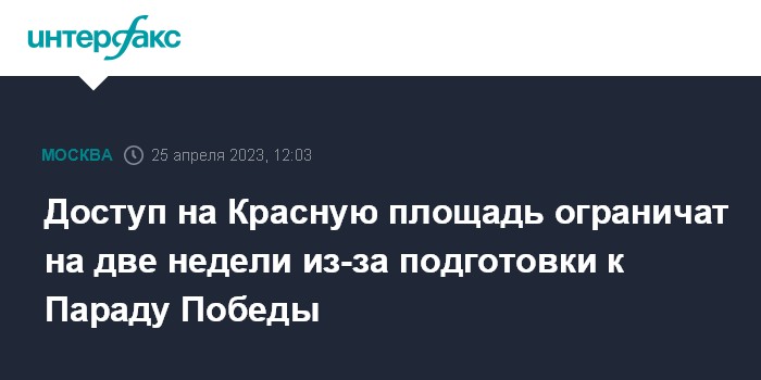 "В связи с подготовкой и проведением торжественных мероприятий, посвященных празднованию 78-й годовщины Победы в Великой Отечественной войне 1941-1945 гг., с 27 апреля по 10 мая 2023 г. Красная площадь будет закрыта для посещения", - говорится в сообщении.