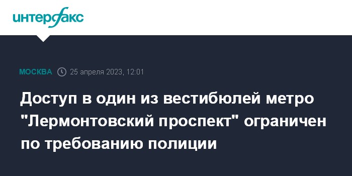 Сначала сообщалось, что на станции "Лермонтовский проспект" по требованию полиции временно закрыт для входа северный вестибюль (выходы 5-6), а в 12:16 дептранс уточнил, что северный вестибюль (выходы 5-6, 8) закрыты и на вход, и на выход.