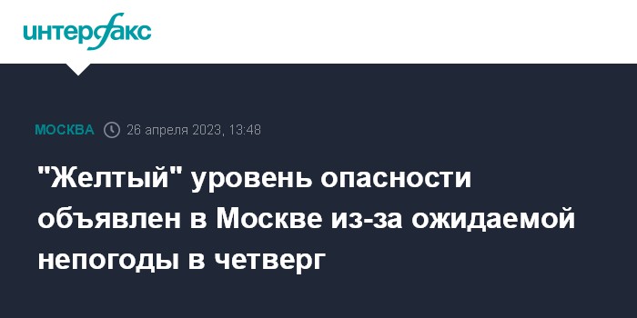 Москва. 26 апреля. INTERFAX.RU - Гидрометцентр России повысил уровень погодной опасности в Москве до "желтого" из-за прогнозируемых неблагоприятных погодных условий в четверг.