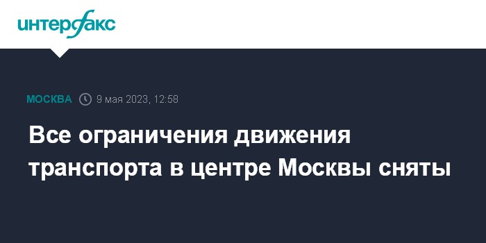 Москва. 9 мая. INTERFAX.RU - В центре столицы сняты все ограничения движения, сообщается в телеграм-канале в департаменте транспорта Москвы.