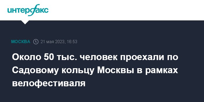 "Рекордное количество велосипедистов - около 50 тыс. человек - проехали сегодня по Садовому кольцу в рамках Весеннего велофестиваля", - сообщил заммэра Москвы по вопросам транспорта Максим Ликсутов, слова которого цитируют в столичном департаменте транспорта.