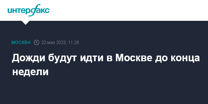 Москва. 22 мая. INTERFAX.RU - Дождливая погода сохранится в Москве до конца недели, в ближайшие дни выпадет 30-50% месячной нормы осадков, температура в течение недели будет повышаться, однако в выходные опять "с трудом будет достигать 20 градусной отметки". Об этом сообщил "Интерфаксу" научный руководитель Гидрометцентра России Роман Вильфанд.