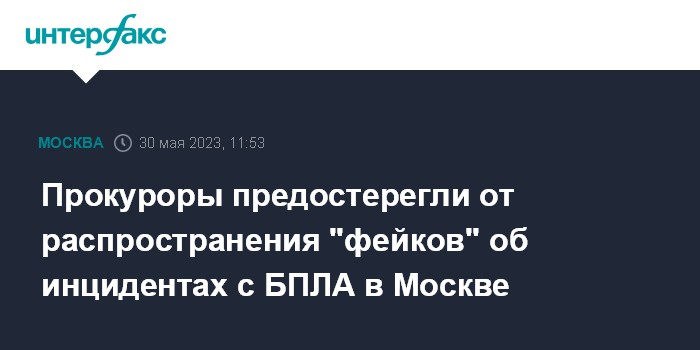 Москва. 30 мая. INTERFAX.RU - Прокуратура Москвы напомнила об уголовной и административной ответственности за распространение недостоверных сведений на фоне появления в соцсетях "фейков" о ситуации с беспилотниками в столице.