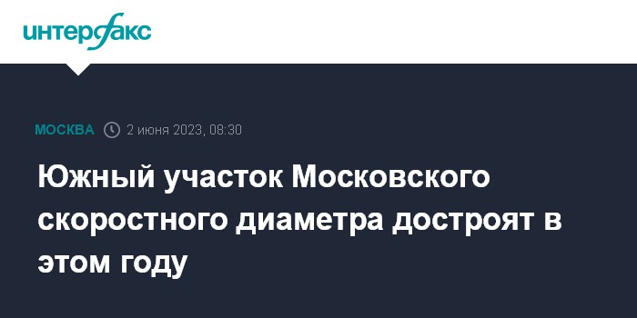 Москва. 2 июня. INTERFAX.RU - Строительство южного участка Московского скоростного диаметра (МСД) завершится в текущем году, сообщил в пятницу мэр города Сергей Собянин.
