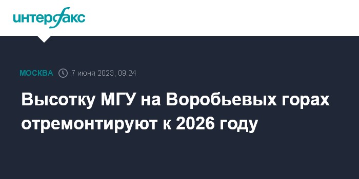 Высотку МГУ на Воробьевых горах отремонтируют к 2026 году