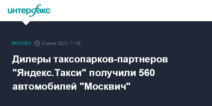 Москва. 9 июня. INTERFAX.RU - Уже 560 "Москвичей" передано дилерам таксопарков-партнеров сервиса "Яндекс.Такси", 200 из них уже используются, сообщил в пятницу заммэра Москвы по вопросам транспорта Максим Ликсутов.