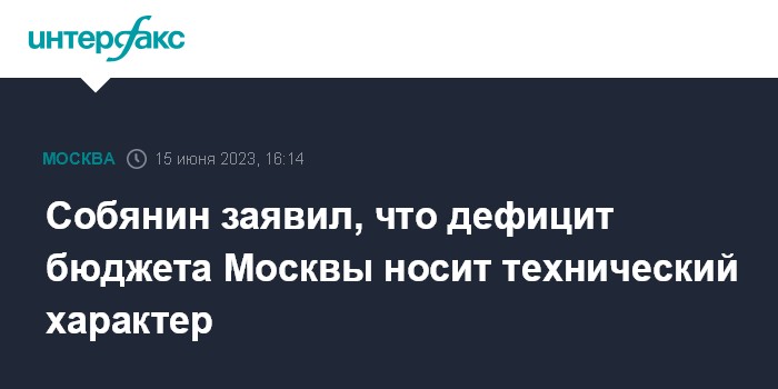 Москва. 15 июня. INTERFAX.RU - Дефицит бюджета Москвы в 2023 году носит технический характер, по итогам года он может быть с нормальными параметрами или даже с профицитом, сообщил "Интерфаксу" мэр столицы Сергей Собянин.