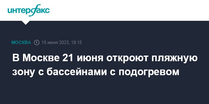 Москва. 15 июня. INTERFAX.RU - В Москве у Южного речного вокзала 21 июня откроют пляжную зону с открытыми бассейнами с подогревом воды, сообщил телеканалу "Москва-24" мэр города Сергей Собянин.
