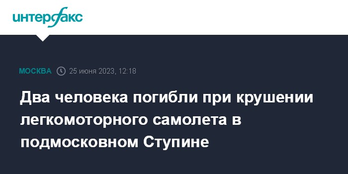 "Легкомоторный самолет, принадлежащий частному лицу, разбился вблизи Ступино. Погибли два человека, находившихся на борту", - сказали в службах.