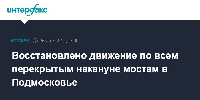 "Движение по мостам в Подмосковье полностью восстановлено и осуществляется в штатном режиме", - говорится в сообщении.