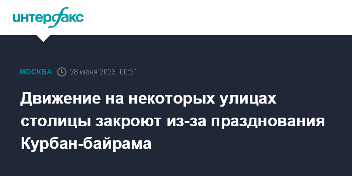 Москва. 28 июня. INTERFAX.RU - Движение на некоторых улицах Москвы будет закрыто в связи с проведением праздника Курбан-байрам, также изменится часть маршрутов наземного транспорта, а в работе станций метро, расположенных вблизи мечетей, могут быть ограничения, сообщили в столичном департаменте транспорта.