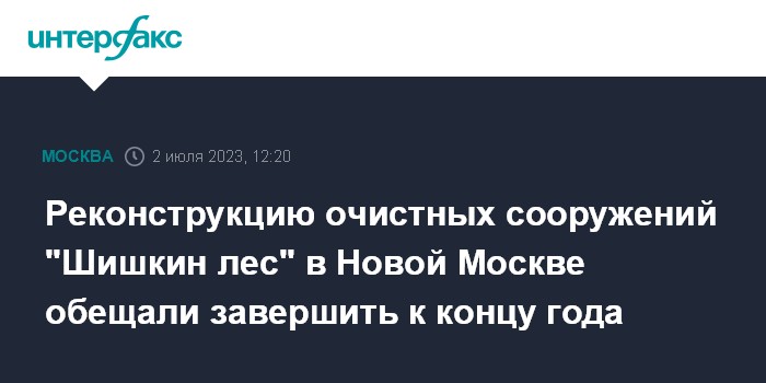 Москва. 2 июля. INTERFAX.RU - Комплексную реконструкцию очистных сооружений "Шишкин лес" в новой Москве планируется завершить к концу текущего года, сообщил в воскресенье мэр столицы Сергей Собянин.