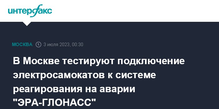 В Москве тестируют подключение электросамокатов к системе реагирования на аварии "ЭРА-ГЛОНАСС"