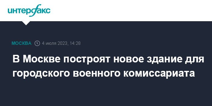 Москва. 4 июля. INTERFAX.RU - В Москве построят новый современный центр для городского военного комиссариата города; в нем создадут комфортные условия для граждан, поступающих на военную службу, и сотрудников военного комиссариата, сообщил сайт мэрии. Здание построят по постановлению мэра столицы Сергея Собянина.