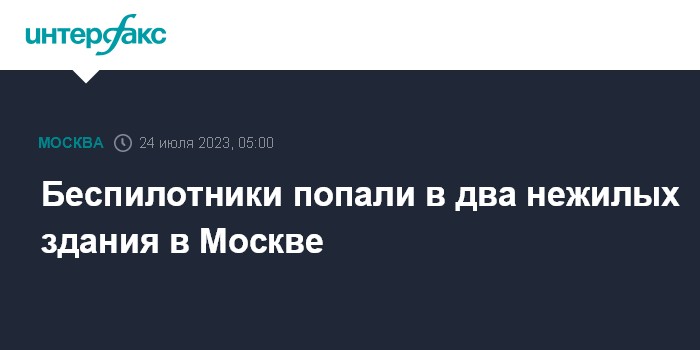 Москва. 24 июля. INTERFAX.RU - Удары беспилотников зафиксированы в Москве по двум нежилым зданиям, серьезных разрушений и пострадавших нет, сообщил мэр Москвы Сергей Собянин.