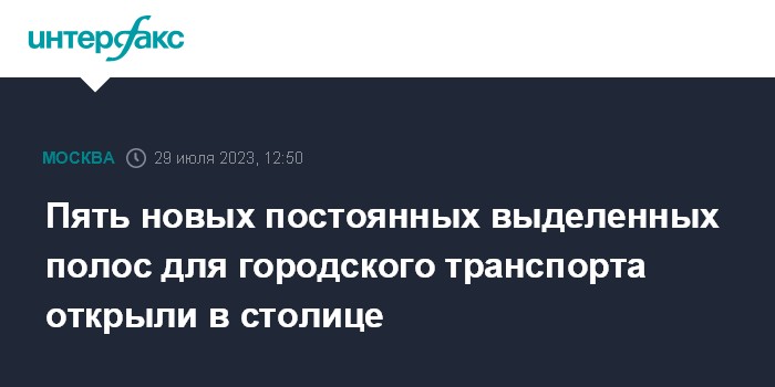 Москва. 29 июля. INTERFAX.RU - В Москве открыли пять новых постоянных выделенных полос для городского транспорта, сообщил в субботу заммэра по вопросам транспорта Максим Ликсутов.