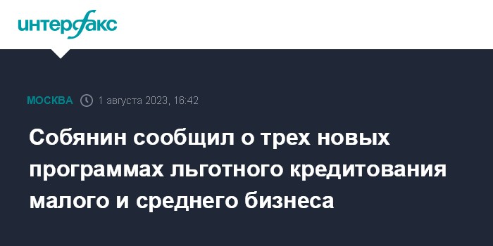 "Запустили три дополнительные программы льготного кредитования малого и среднего бизнеса", - написал Собянин в своем телеграм-канале.