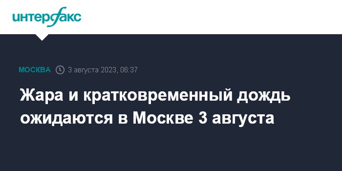 Жара и кратковременный дождь ожидаются в Москве 3 августа
