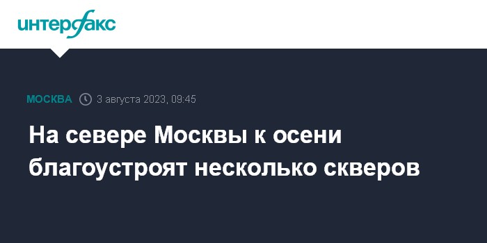 Москва. 3 августа. INTERFAX.RU - На севере Москвы к осени благоустроят несколько скверов в районах Ховрино, Западное и Восточное Дегунино, Войковский и Коптево благоустроят к осени, сообщил в Telegram мэр города Сергей Собянин.