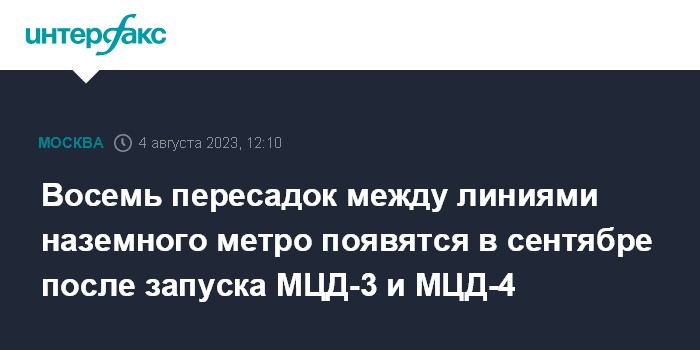 Восемь пересадок между линиями наземного метро появятся в сентябре после запуска МЦД-3 и МЦД-4