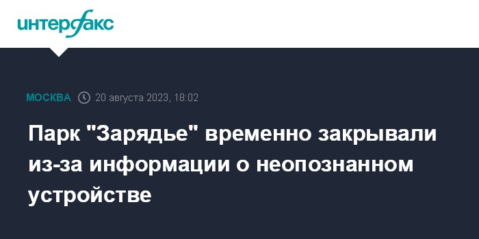 "Доступ на территорию парка "Зарядье" временно закрыт в связи с поступившей информацией о неопознанном устройстве", - говорится в сообщении на сайте парка.
