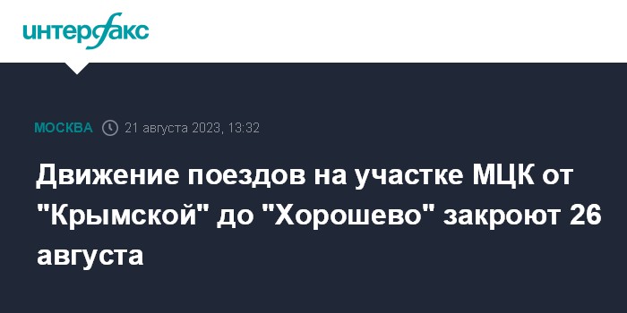 Движение поездов на участке МЦК от "Крымской" до "Хорошево" закроют 26 августа