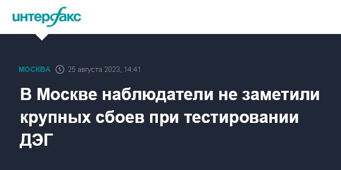 Позднее заместитель руководителя Общественного штаба по наблюдению за выборами, руководитель электронного штаба Илья Массух сообщил "Интерфаксу", что тестирование ДЭГ в Москве завершилось, прошло без DDoS-атак и серьезных сбоев.