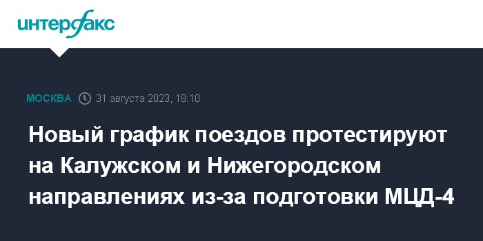 Москва. 31 августа. INTERFAX.RU - Новый график движения поездов будут тестировать на Калужском и Нижегородском направлениях в связи с подготовкой к запуску четвертой линии Московских центральных диаметров (МЦД-4, D4), сообщили в четверг в столичном департаменте транспорта.