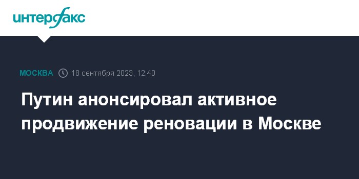 Москва. 18 сентября. INTERFAX.RU - В Москве в ближайшие пять лет будет активно продолжаться программа реновации жилья, заявил на инаугурации мэра столицы Сергея Собянина президент РФ Владимир Путин.