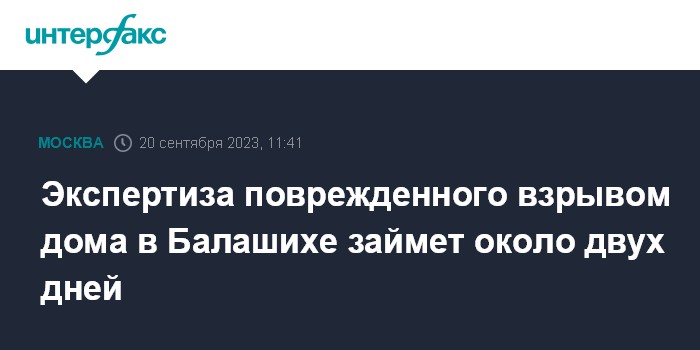 Москва. 20 сентября. INTERFAX.RU - Губернатор Московской области Андрей Воробьев сообщил, что обследование дома в Балашихе, где произошел взрыв газа, займет около двух дней.
