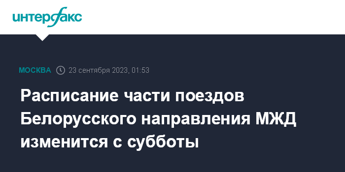 Расписание части поездов Белорусского направления МЖД изменится с субботы