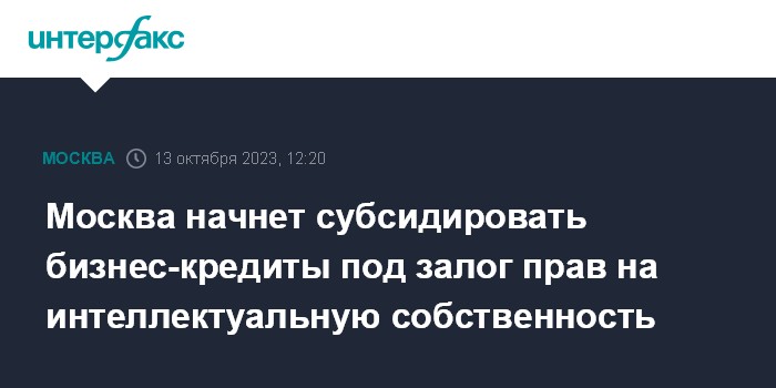 Москва. 13 октября. INTERFAX.RU - В Москве начнут субсидировать кредиты для бизнеса под залог прав на интеллектуальную собственность; город впервые будет помогать гасить проценты по ним, сообщил мэр столицы Сергей Собянин.
