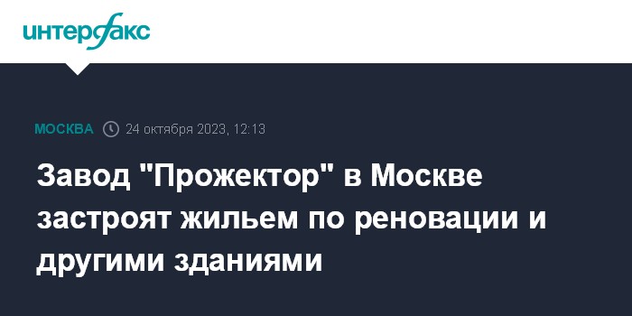Завод "Прожектор" в Москве застроят жильем по реновации и другими зданиями