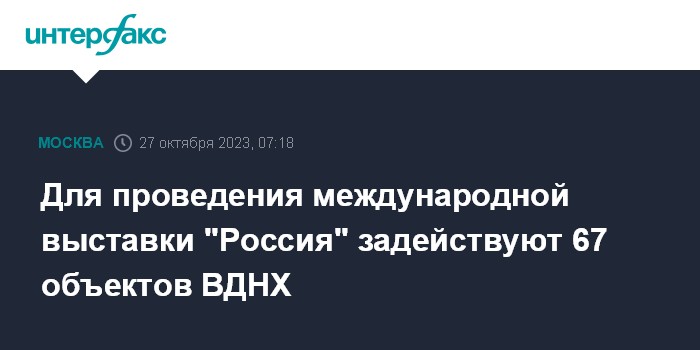 Для проведения международной выставки "Россия" задействуют 67 объектов ВДНХ