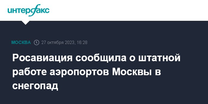 Москва. 27 октября. INTERFAX.RU - Аэропорты Москвы и Московской области работают в штатном режиме, несмотря на снег с дождем, ветер и гололед, сообщает телеграм-канал Росавиации.
