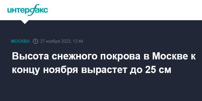 Москва. 27 ноября. INTERFAX.RU - Небольшой снег будет идти в Москве в течение недели, еще один снегопад прогнозируется в четверг; высота снежного покрова в столице к концу ноября вырастет до 25 см, выпавший снег не растает уже до весны, сообщил "Интерфаксу" научный руководитель Гидрометцентра России Роман Вильфанд.