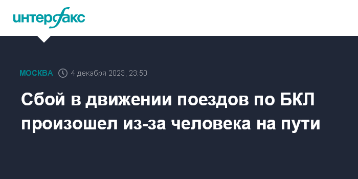 Москва. 4 декабря. INTERFAX.RU - Поезда ходят с увеличенными интервалами на Большой кольцевой линии (БКЛ) метро Москвы из-за человека на пути, сообщили в столичном департаменте транспорта.