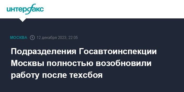 Москва. 12 декабря. INTERFAX.RU - Специалисты устранили неполадки, нарушившие работу подразделений Госавтоинспекции Москвы, сообщила официальный представитель МВД России Ирина Волк.