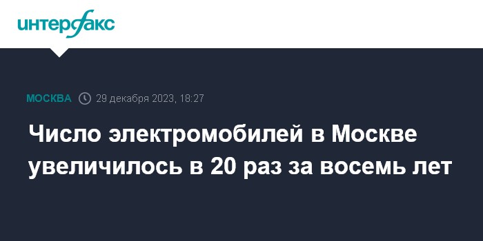 Москва. 29 декабря. INTERFAX.RU - В столице количество электромобилей увеличилось в 20 раз с 2015 по 2023 год, через пять лет доля электрических машин в городе может составить около 30%, сообщил заммэра Москвы по вопросам транспорта Максим Ликсутов.