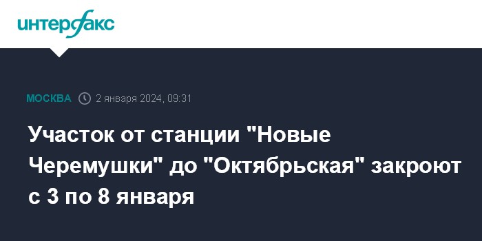 Участок от станции "Новые Черемушки" до "Октябрьская" закроют с 3 по 8 января