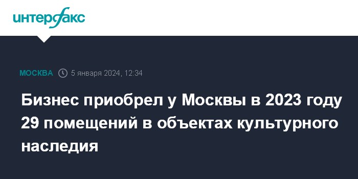 Бизнес приобрел у Москвы в 2023 году 29 помещений в объектах культурного наследия