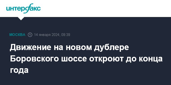 Москва. 14 января. INTERFAX.RU - В Москве завершено строительство нового дублёра Боровского шоссе, движение по нему планируется открыть до конца года, сообщил мэр столицы Сергей Собянин.