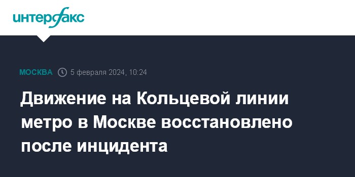 Движение на Кольцевой линии метро в Москве восстановлено после инцидента