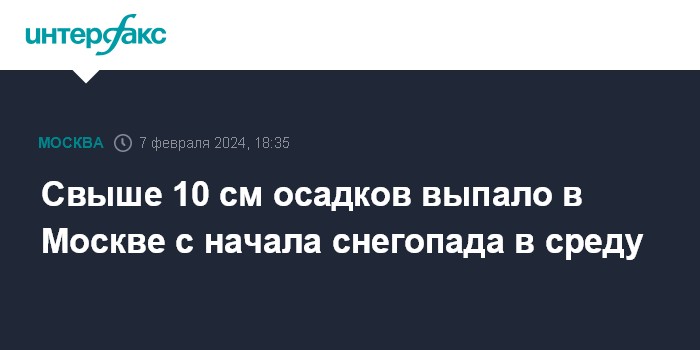 Москва. 7 февраля. INTERFAX.RU - Более 10 см снега выпало в столице с начала снегопада, до пяти часов утра четверга ожидается такое же или большее количество осадков, для уборки привлечены дополнительные силы и средства, сообщил журналистам заместитель мэра Москвы по вопросам ЖКХ и благоустройства Петр Бирюков.